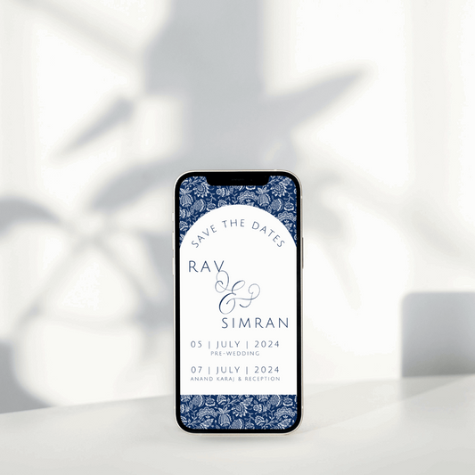 Indian Save The Date | DigitalIndian Wedding Save the Date Send your Dave the Date Card Digitally to your Friends and Family. This is with a gorgeous blue print with a lot of fine detail! Make an announcement to your friends and family in style.Wording can be customised to...