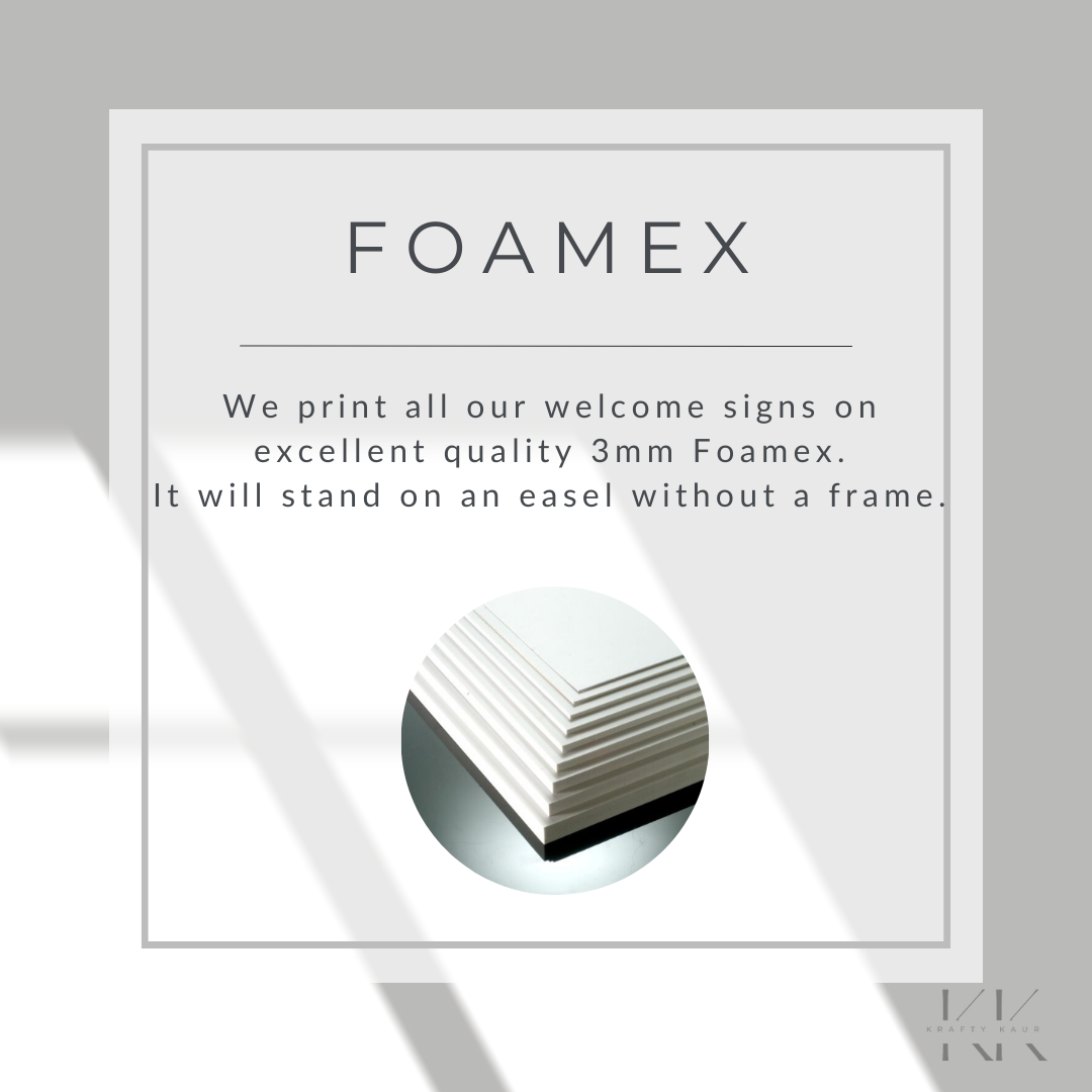 FOAMEX BOARD - The sign will come backed onto 3mm foamex which will make the sign rigid so it will stand on an easel. No framing required.