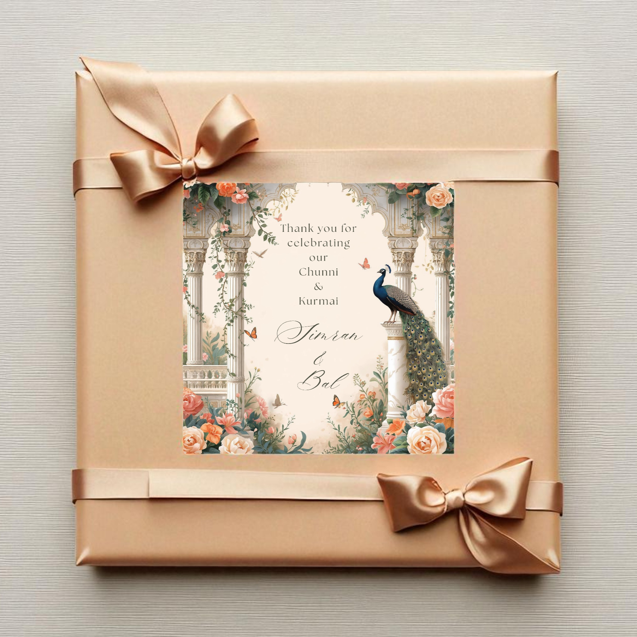Elegant Peacock Theme Mithai Box Sticker / Tag – Customisable Digital File