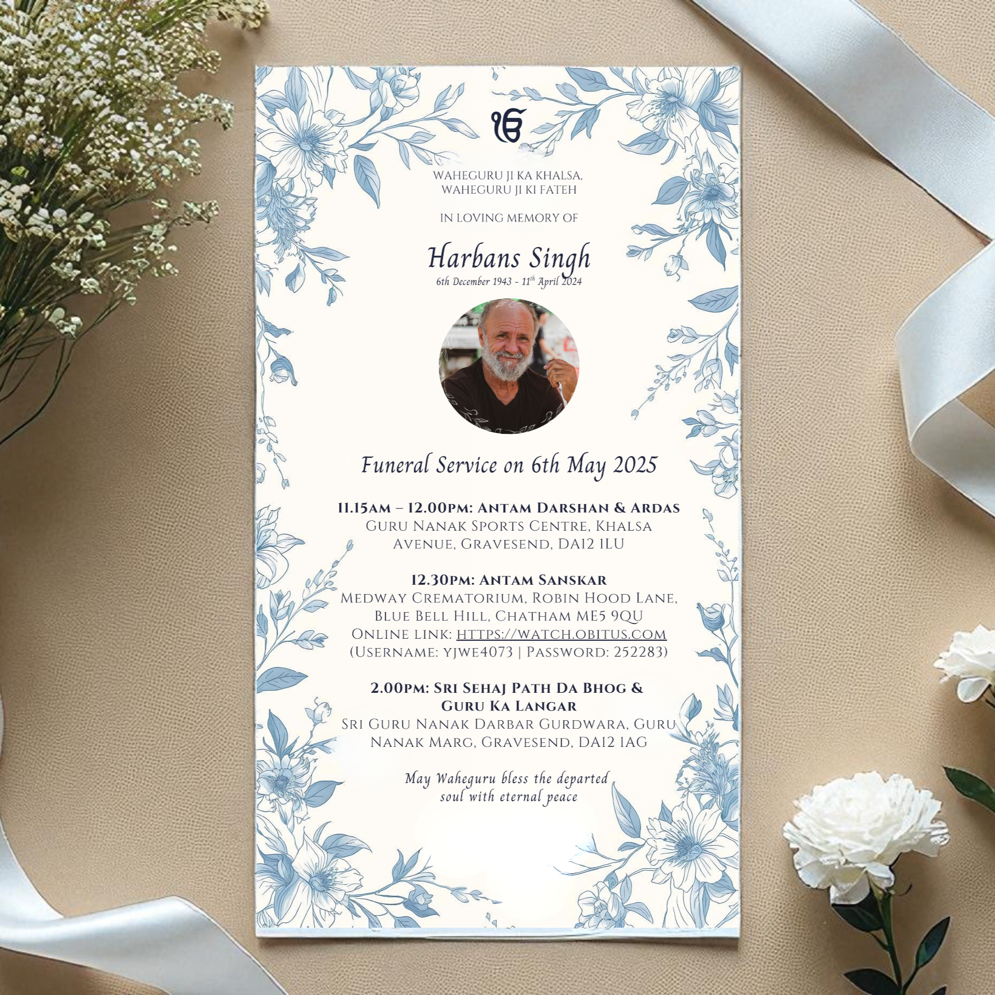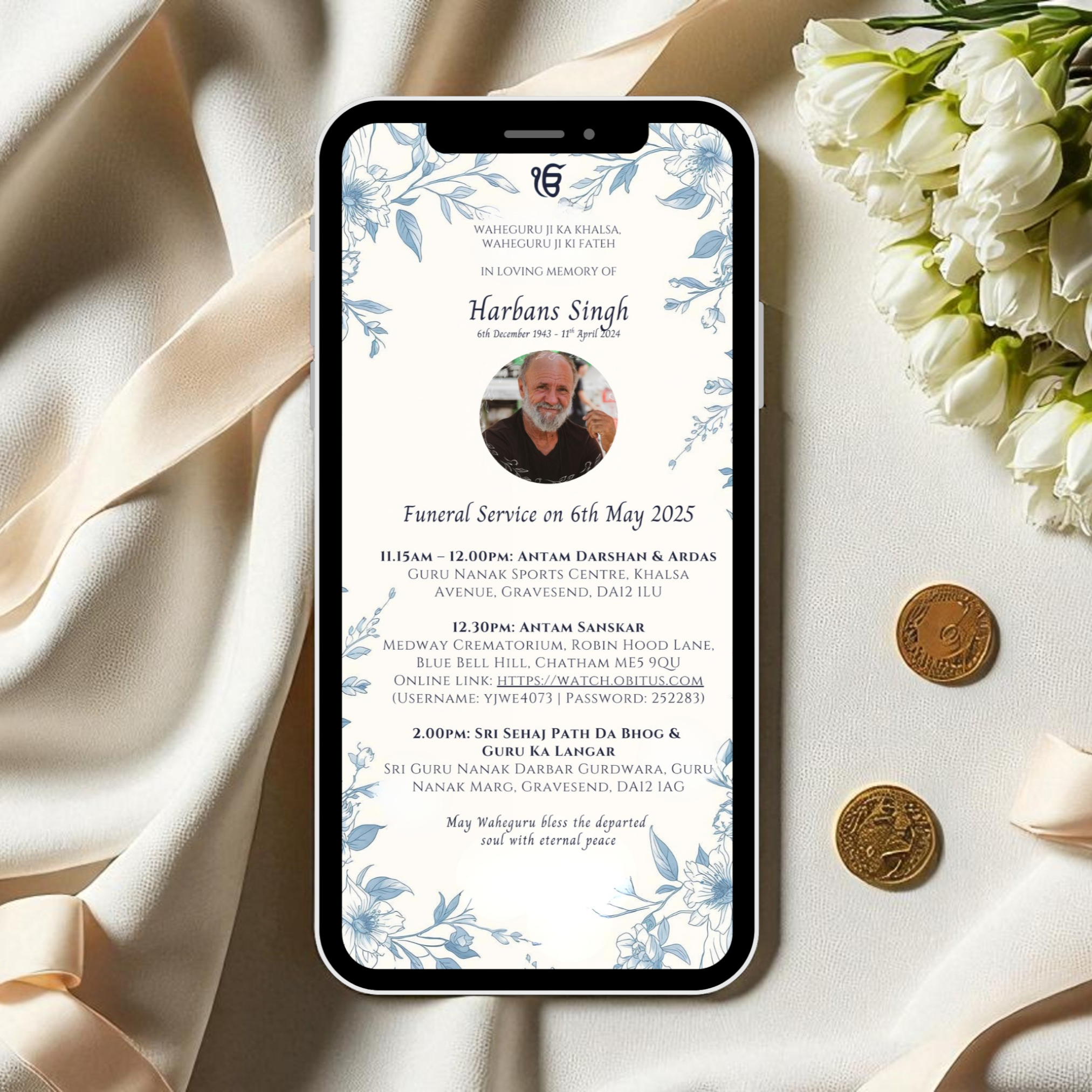 Commemorate with grace - this beautifully crafted digital funeral invitation from KraftyKaur.com is a gentle way to inform your guests of the service details for a beloved soul. Honour their memory and invite loved ones to share in the farewell.