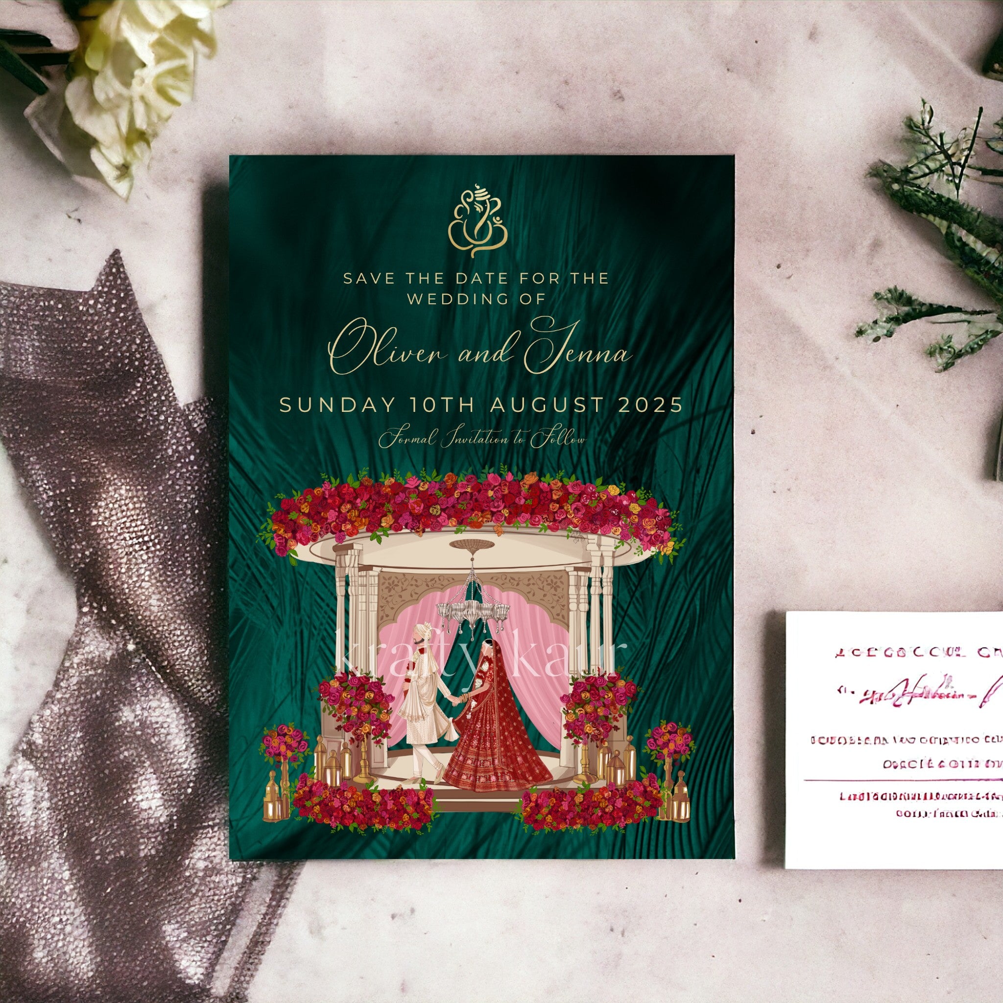 Hindu Wedding Invitation - with a beautiful Mandap Illustration Couple - Printed Invitation
