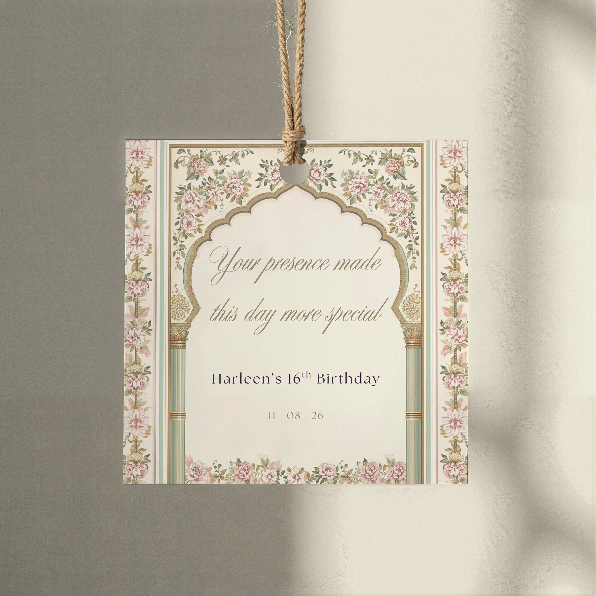 Add a touch of elegance to your mithai boxes, party favors, or gift bags with our beautifully designed square floral arch stickers/tags. Perfect for weddings, birthdays, and special occasions.